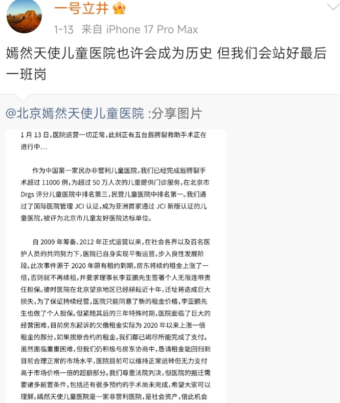 然而,如今他却陷入了房租欠款的风波中。嫣然天使儿童医院面临着巨大的经济压力,甚至可能成为历史。但李亚鹏在视频中表示,会站好最后一班岗,这份担当和责任感让人敬佩。目前,他正在积极应对房租问题,努力寻找解决办法,希望能让医院继续运营下去,帮助更多的孩子。