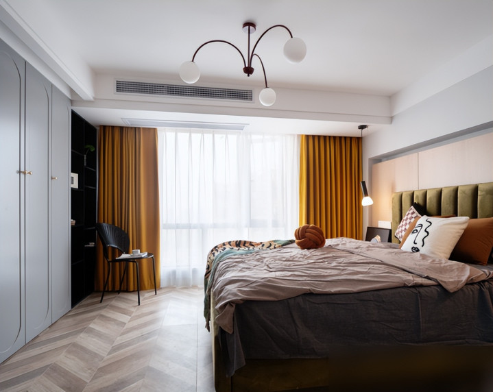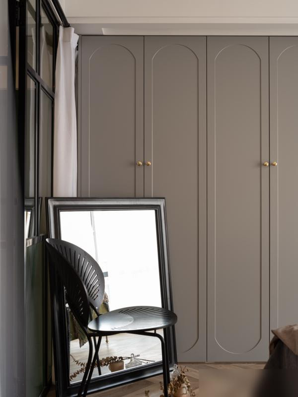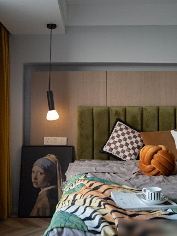 床尾做了一整面收纳柜,本来担心“柜子太大显压抑”,结果设计师做成“平整款”,和墙面融为一体,装得下换季衣服、行李箱,甚至囤的零食,却不像个“储物怪兽”。更妙的是地上摆的单品——不是规规矩矩塞柜子,而是随意但有章法地放着,像杂志里的“艺术角落”,连睡觉都像在“逛展”,这哪是卧室?是“一个人的浪漫基地”啊!